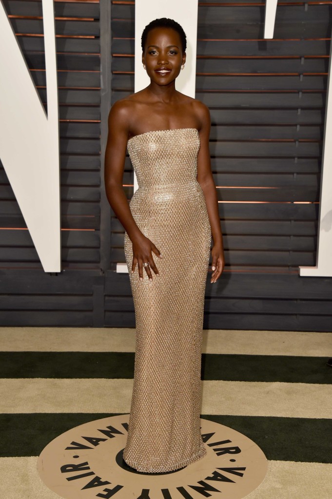 Durante a cerimônia, Lupita, que apresentou o prêmio de melhor ator coadjuvante, chamou a atenção num vestido todo bordado, com seis mil pérolas. O irmão de Lupita, Junior Nyong’o, foi o acompanhante da atriz na noite de premiação e usou um modelo também da Calvin Klein Collection.