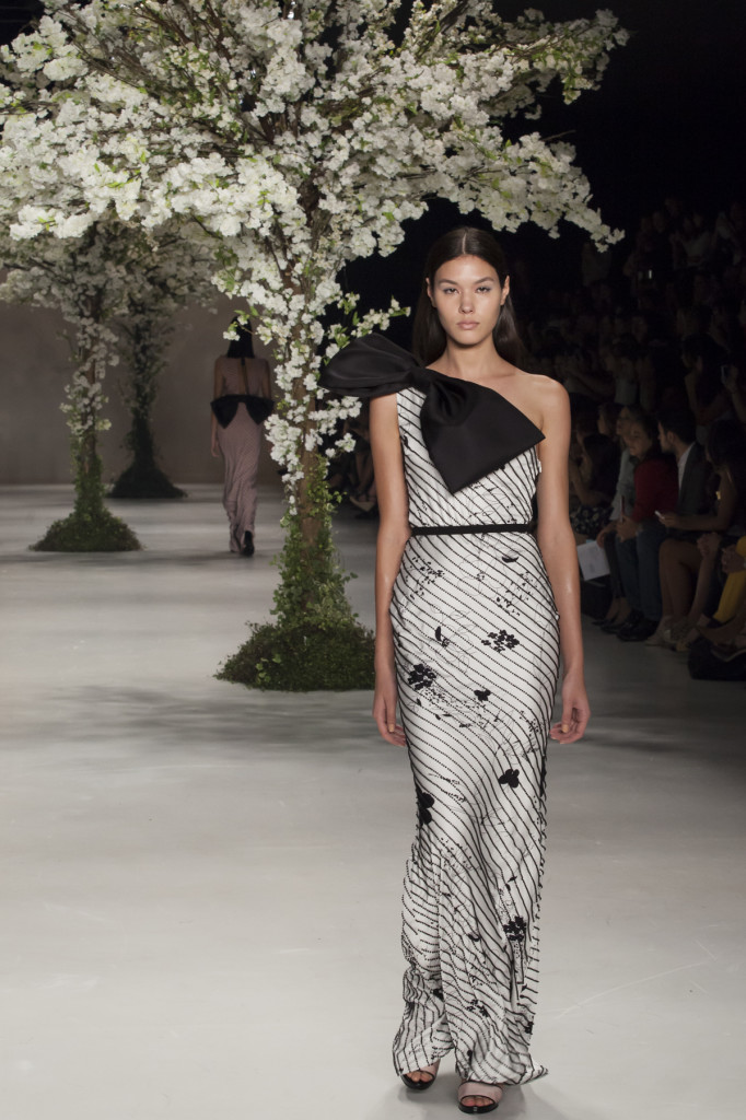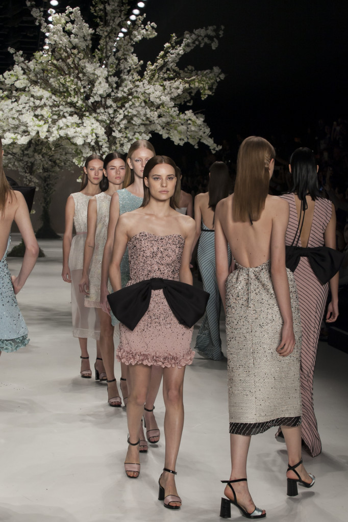 Os tecidos utilizados são o tear de ráfia, a renda guipure, o cetim estampado, o Bianchini e a organza. Os bordados manuais se referem à delicadeza e a beleza das cerejeiras. Foram criados com a mistura de materiais (vidrilhos, pérolas, miçangas de diferentes tamanhos e cores) e ainda flores confeccionadas em tecidos.