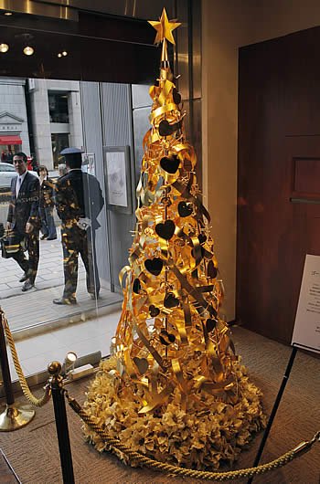 A árvore de Natal que fica localizada em loja de joias em Tóquio, no Japão, tem apenas 2,5 metros de altura, porém de toda de Ouro puro. A árvore não é para se vender, porém vale US$ 2,1 milhões.