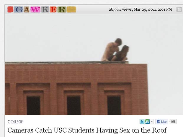 Uma foto que mostra um casal fazendo sexo no telhado de um prédio da Universidade do Sul da Califórnia (USC), que foi publicada no último fim de semana em sites e blogs na internet, provocou indignação na instituição, segundo reportagem do jornal “Los Angeles Times”.