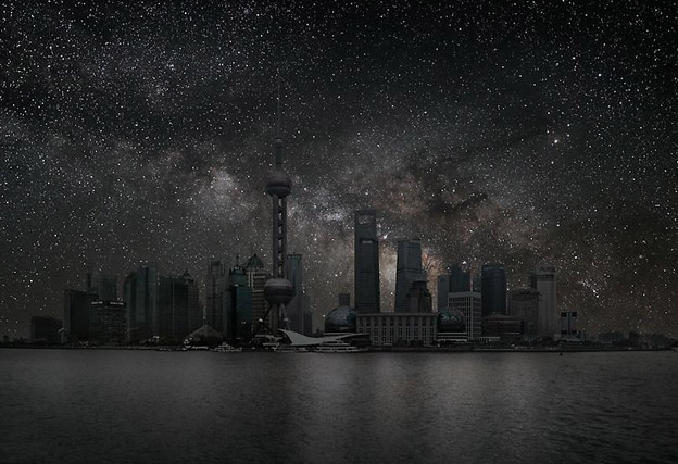 O artista Thierry Cohen resolveu dar uma ajudinha para estas pessoas que não podem desfrutar desta beleza. Thierry saiu fotografando metrópoles em pontos de destaque durante a noite, ao fazer cada fotografia ele ia anotando a hora, latitude e longitude exatas do local. Com esta referência, Cohen saiu para locais que tenham o céu mais “limpo” onde seja possível apreciar o vasto céu e fazer novas fotografias. Bastou alguns cálculos de rotação da Terra, movimentação e ele conseguiu unir a foto da metrópole durante a noite com a fotografia do céu. O resultado? Muuitas estrelas e constelações nos céus das grandes cidades! Magnífico!