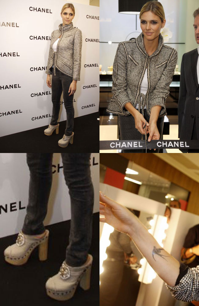 As loucas por maquiagem podem começar a rezar pela Nossa Senhora do Visa! Chegou ao Brasil, no Rio de Janeiro, a loja de make-up da Chanel. Todos aqueles produtinhos e esmaltes de edição especial para giletarmos o cartão de crédito com gosto! Fernanda Lima foi convidada para cortar a faixa de inauguração. Com um casaqueto clássico da marca, Fernanda me matou de tristeza com essa babucha. Podem chamar de clog para ficar phynno! Mas, nem assim, essa coisinha vai me convencer!