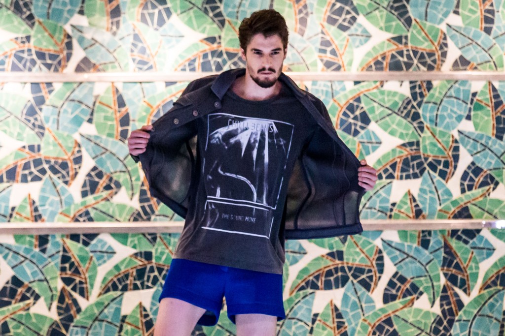 O desfile de estreia das primeiras t-shirts da coleção aconteceu neste último sábado, 2, durante o Chilli Beans Fashion Cruise – cruzeiro onde a marca é patrocinadora máster e reúne desfiles, festas, arte e economia criativa a bordo.