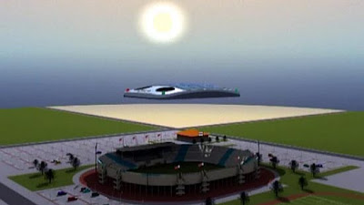 A nuvem flutuaria no céu com a ajuda de gás hélio, bloqueando os raios solares e refrescando o estádio onde se realiza o jogo.