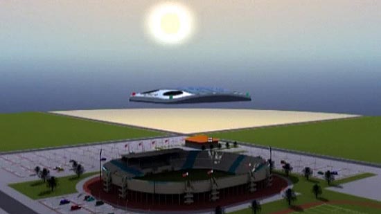 Nuvem artificial flutuaria no céu com a ajuda de gás hélio, bloqueando os raios solares e refrescando o estádio
