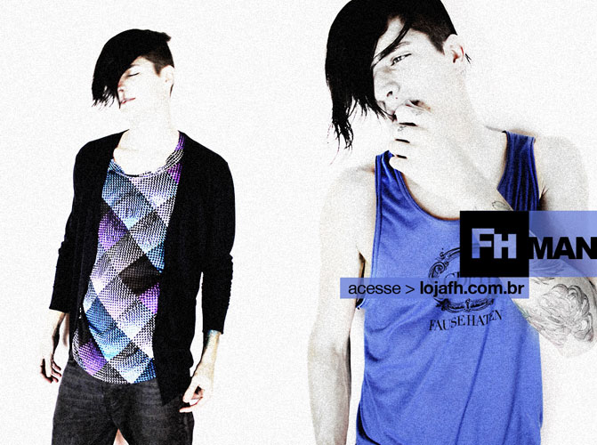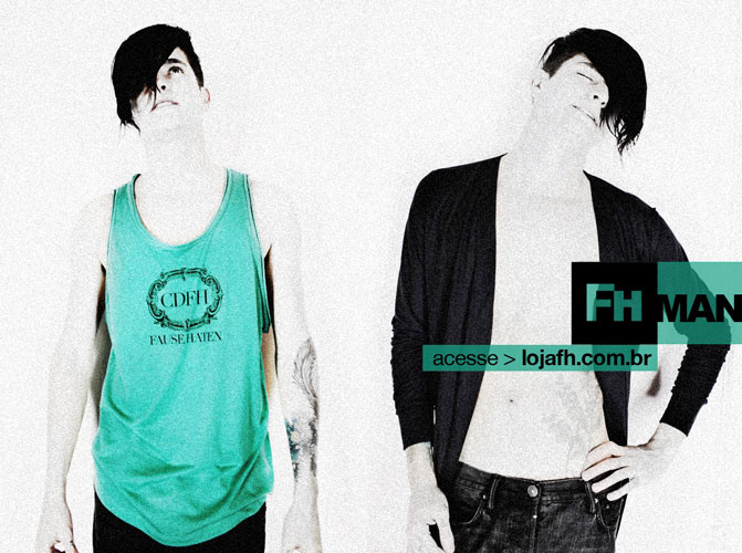 Desde que Fause Haten passou a chamar sua marca de FH por Fause Haten, ele não lançou mais nada pro público masculino… até agora! A loja online de Fause já disponibiliza regatas, camisetas e cardigãs de primavera-verão 2011/12 pra eles, e aproveita o lançamento do CD do estilista-cantor pra usar o logo do disco (“CDFH“) e a imagem da capa (o rosto de Fause à Pinhead do “Hellraiser“) como estampa. Outro atrativo? As peças vão de R$ 49 a R$ 89! Preço de fast-fashion, né? Passa lá no site dele pra comprar – a coleção e o álbum!