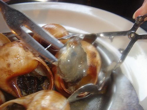 Molusco terrestre, é encontrado nos bosques franceses, de muito valor é raramente consumido no Brasil por ser muito caro, e com certeza importados. Normalmente vem em latas que vem apenas a carne do escargot e são colocados dentro do próprio caracol para o preparo e servir. Prepare um molho à base de alho, salsa, manteiga, noz-moscada e ervas aromáticas importadas (de Provence) estragão, tomilho, segurelha e outras. Coloque um pouco de molho. Em seguida, eles serão arrumados com a boca para cima em um prato especial, antes de ir ao forno. Este prato tem pequenas cavidades próprias para acomodar o caracol, e é refratário. Se o caracol vazio não for encontrado,podem-se acomodar a carne e o molho em cogumelos grandes,com o talo cortado, virados com a parte côncava para cima. Depois de 7 minutos no forno bem quente, vai direto para a mesa, arrumando como está. Para comê-lo, há talheres especiais: uma pequena pinça na mão esquerda segura o caracol enquanto a carne é retirada com um garfo de dois dentes. A quantidade mínima por pessoa é de meia dúzia. Acompanha pão branco (a tradição francesa manda limpar o molho do prato com o pão) e o vinho tinto, mais próprio para acompanhar um molho tão ativo e aromático.