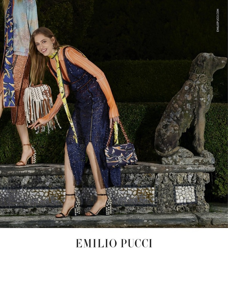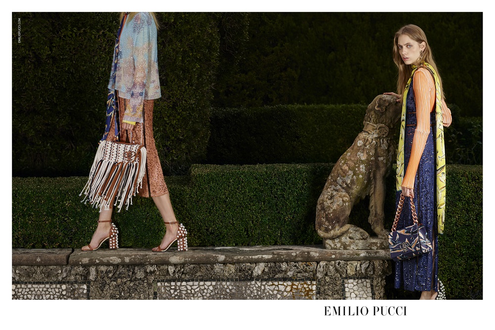 O mood e o look seguem a nova ordem de quebrar regras de Giorgetti. As imagens são nobres e alimentadas pela velocidade, uma picada impulsiva das ruas. Firmado nas bases da Villa Gamberaia, um esplêndido palazzo renascentista escondido nas colinas nas redondezas de Firenze, a campanha segue a fascinação de Giorgetti com o coração aristocrático de Pucci. Porém sob a decadente superfície encontra-se uma nova energia underground e um espírito renegado que guia um conteúdo cool fashion para uma nova geração.