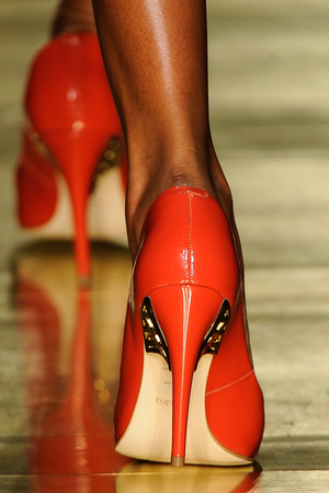 Scarpins de bico fino são a grande aposta, e para trazer exclusividade, foi inserido um trabalho em metal, os modelos em vermelho com dourado e preto com ônix valem a pena.