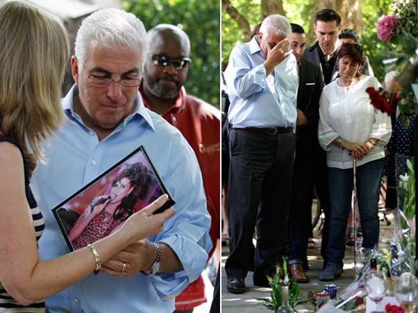 O pai Mitch Winehouse, irmão Alex, namorado de Amy Reg Traviss e a Mãe Janis Winehouse