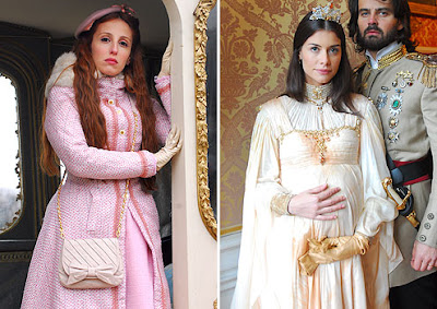 Uma das maiores dificuldades que Marie e Karla enfrentaram na hora de criar o figurino de Seráfia do Norte foi encontrar o material para a gola e a dragona do rei Augusto. “Só conseguia imaginar o metal. Fomos a um monte de ferro velho, fui a uma feira no Bixiga, em São Paulo, atrás de uns puxadores de porta. Mas nada ficava bom. Na hora que bordávamos no manequim, caía. Era pesado demais. Até que a Karla descobriu um menino que trançava metal numa feira aqui no Projac [complexo de estúdios da Globo]. Conseguimos, então, o que procurávamos”, recorda Marie, afirmando que as dificuldades não pararam por aí: “Aí começamos a busca pela cor. Porque existem vários tipos de ouro. Só que no alumínio não pega. Então dá um trabalho danado. Porque temos que colocar uma química, depois banhar de ouro. Enfim, é tudo artesanal”.
