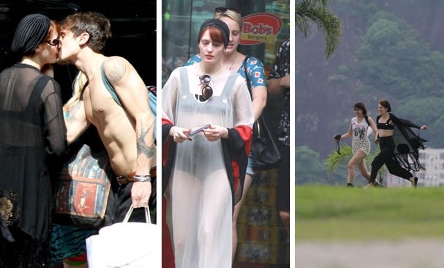 A vocalista do Florence + The Machine chegou ao Rio na segunda-feira e já foi fazer a gatinha da cachoeira e curtir o sol com os amigos.