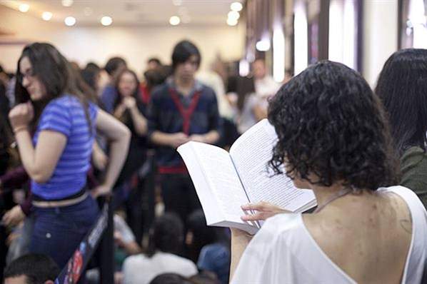 Fã livro da série “Harry Potter”, da autora britânica J.K. Rowling, espera por sessão de pré-estreia do último filme da saga, “Harry Potter e as Relíquias da Morte – Parte 2”.que estreia nos cinemas do país