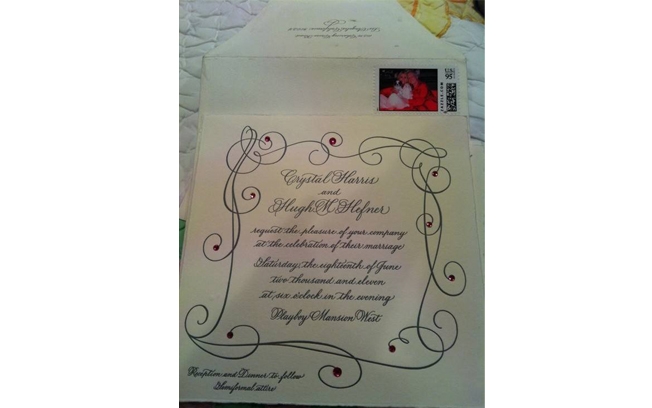 Reprodução O convite de casamento de Hugh Hefner com sua coelhinha nº1, a jovencita Crystal Harris…
