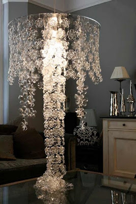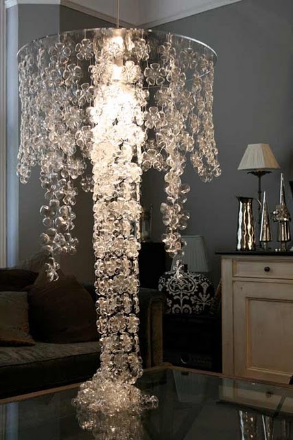 decoração ILUMINAÇÃO Michelle Brand via Inhabitat Lustre feito a partir da parte inferior das garrafas plásticas. Incrível, parece que vale, um milhão de dólares. Shoestring Pavilion Candelabro feito de jarros de leite e uma luminária. Clique no link acima para ver como. Eduardo Gontijo Agora o Rei Sol está a postos… CLASSIC…