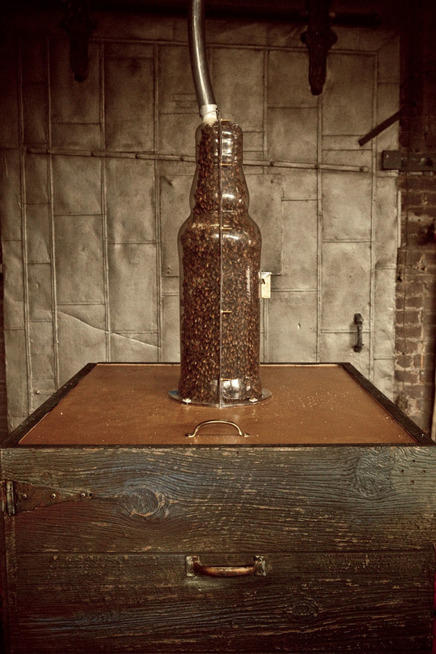 O projeto foi realizado para promover um novo sabor de whisky com nuances de mel, o Dewar’s Highlander Honey. O grupo Ebeling, liderado pelo apicultor Robin Theron usou cerca de 80 mil abelhas para que a garrafa e o busto de um homem fossem confeccionados com favos. O resultado é curioso e incrível.