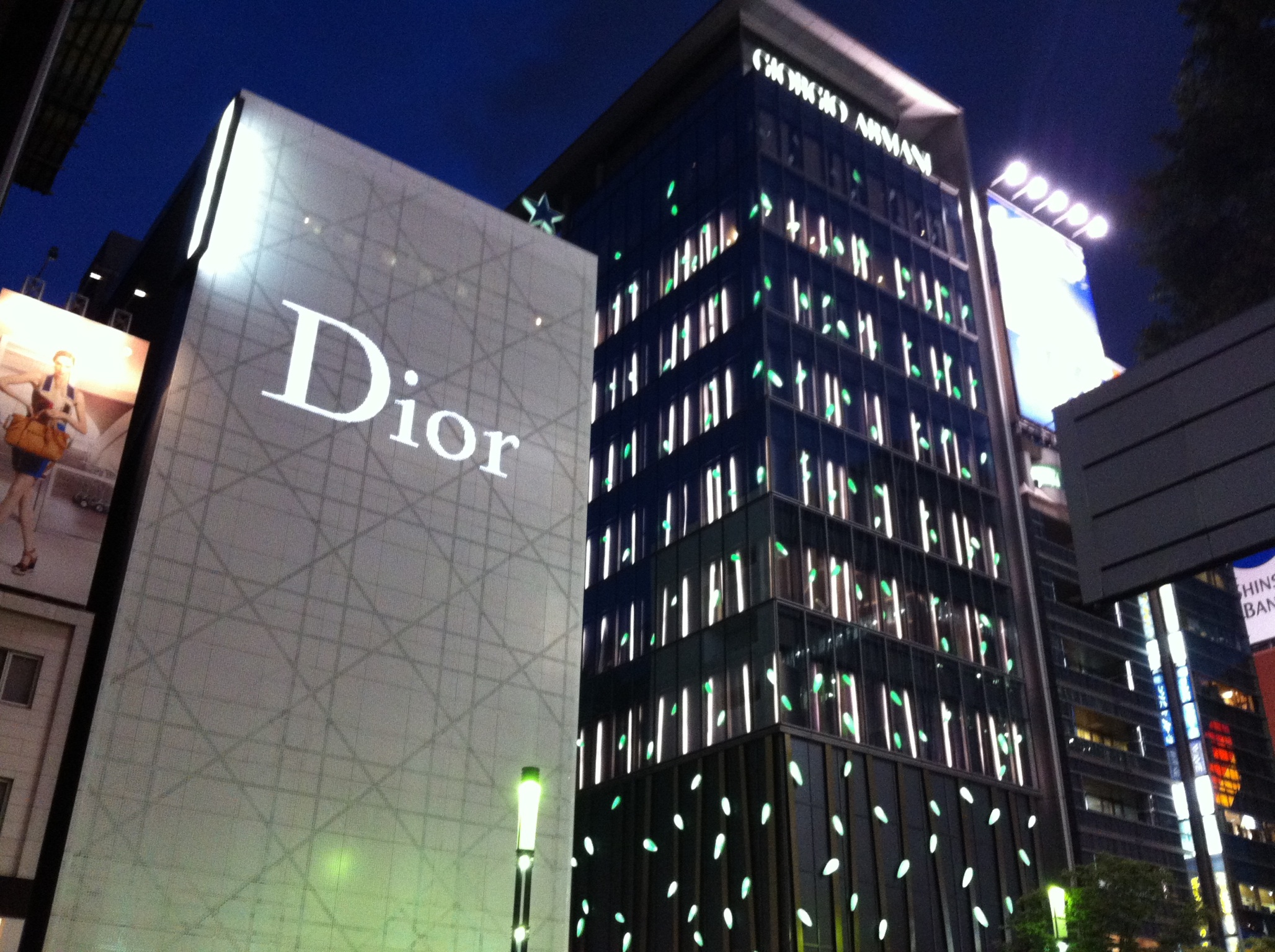 Tóquio oferece tudo, a qualquer hora do dia ou da noite. Cosmopolita, mais frenética do que New York, com metrôs e galerias subterrâneas, o maior centro econômico do Oriente ostenta, nas ruas de Ginza (o bairro mais chique de Tóquio) frenesi em lojas como Lladró, Cartier, Goyard, Rolex (sempre lotadas). A grande diferença é que lojas e restaurantes (incluindo boates) se colocam na vertical. Pela falta de espaço, existem prédios inteiros compostos de restaurantes, cada qual num andar. Uma das lojas Louis Vuitton de Ginza (existem 5 lojas Louis Vuitton apenas nesse bairro) ergue-se num edifício de 8 andares. Cartier, em 12 andares. Prada, em 8. E assim, Tóquio vai crescendo “pra cima” – onde todo cuidado é pouco pois, na busca para localizarmos alguns dos muitos nomes expostos na vertical, corremos o risco de tropeçar na grande multidão.