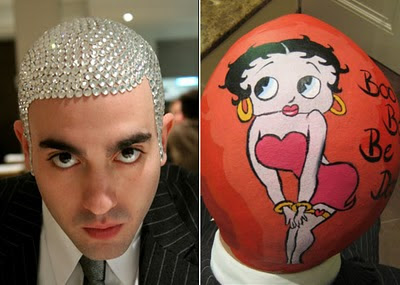 que estava perdendo os cabelos. Ao invés de comprar uma peruca, ele optou por tatuar a cabeça. E com os mais diversos temas.