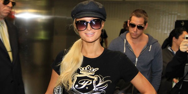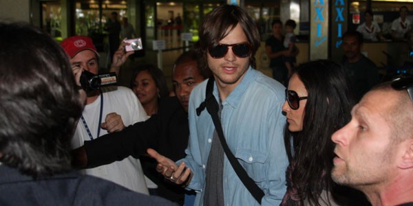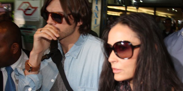 Sim, eles estão entre nós! Ashton Kutcher e Demi Moore já estão em solo verde-amarelo. O casal, que está no país para participar da São Paulo Fashion Week, chegou ao aeroporto de Guarulhos nesta quinta-feira (27). Quem também estava no voo era Paris Hilton, que fez pose na hora do desembarque com Cy Waits, o namorado, a tiracolo (na foto, de moleton cinza e óculos escuros)