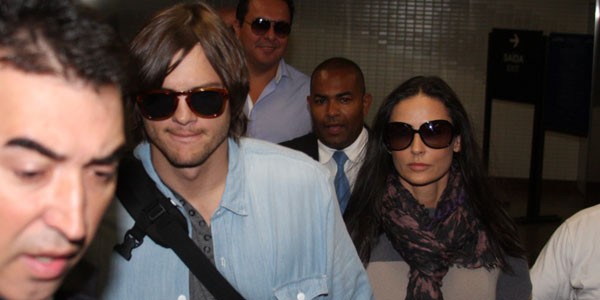 Ashton desfila neste domingo (30) para a Colcci, ao lado de Gisele Bündchen. Demi, por sua vez, confere a performance de modelo do maridão da fila A