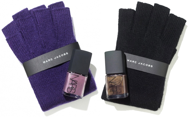 Marc e Nars desenvolveram kit para o fim de ano contendo luvinhas de cashmere e esmaltes. O par preto é acompanhado de um esmalte dourado o as luvinhas roxas por um vidrinho lavanda. Cada um deles custa US$ 52 ( aproximadamente R$ 90) e pode ser comprado na loja da Nars localizada na Bleeker Street, em Nova York.”