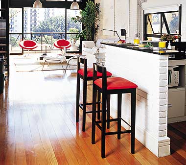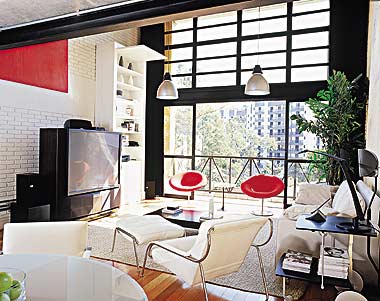 O jovem empresário se encontrou no espaço de 120 m2. Com as características originais mantidas, o imóvel recebeu pintura nas paredes e estruturas metálicas, além de movéis apropriados para casa de homem.
