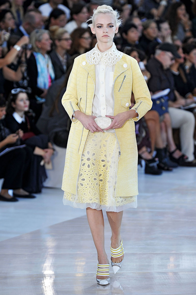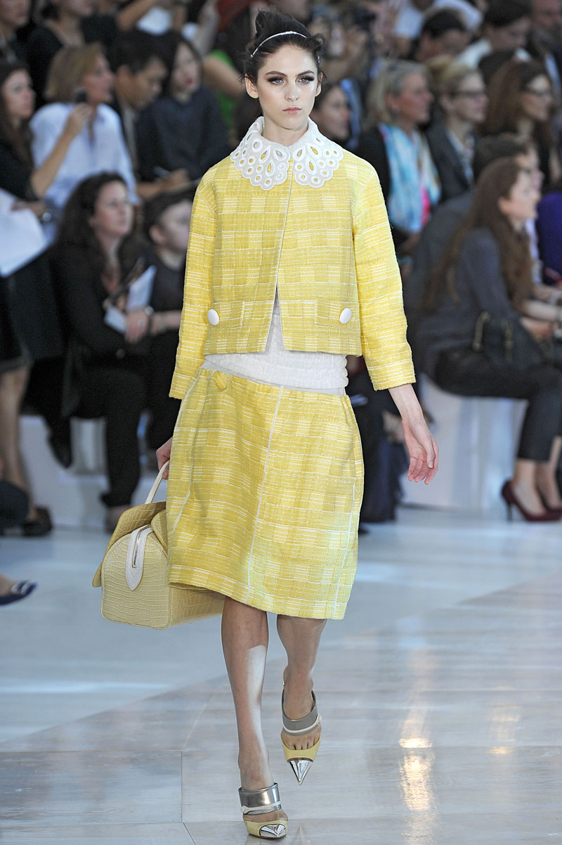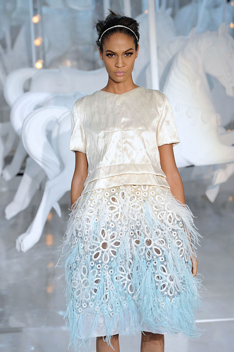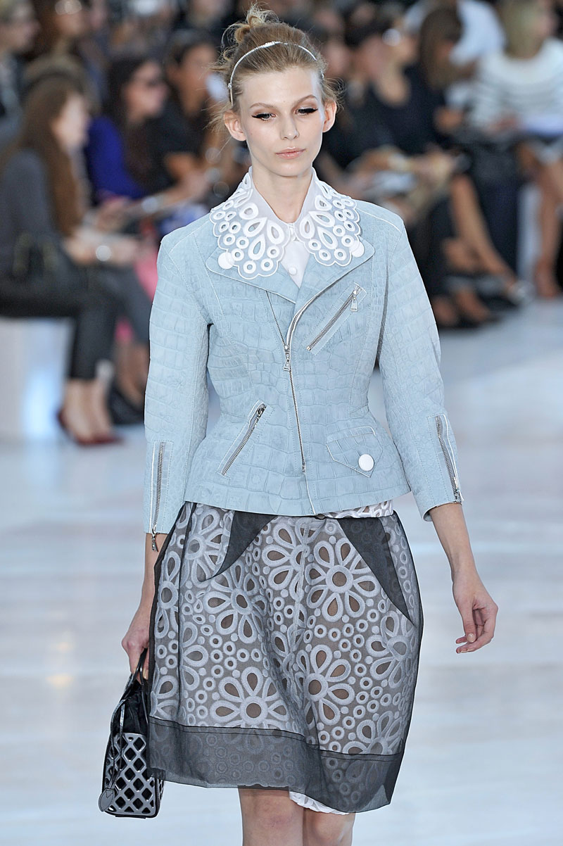Nenhum comentário a respeito da ida de Marc Jacobs pra Dior ou da permanência dele na direção criativa da Louis Vuitton. Se ele sair, esse desfile de primavera-verão 2012 na Semana de Moda de Paris seria seu último na LV. De qualquer forma, aapresentação-show não teve clima de despedida: se o inverno passado foi fetichista e noir, o verão vem luminoso, todo em branco e cores claríssimas, cheio de bordado inglês em forma de flores. Bem retrô e ladylike, encheu os olhos de quem assistiu ao vivo: as modelos saíam de um grande carrossel. Pra fechar, Kate Moss reaparece – e ao contrário do desfile passado, no qual ela fumava um cigarro e usava uma hot pant, dessa vez ela se veste de princesinha do bem com direito a pluminhas no vestido eescarpin branco. O verão é meigo pra Marc!