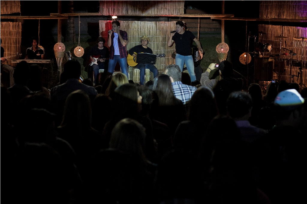 A natureza da chácara Angalual colaborou com a noite, que estava bonita e cheia de luz. A apresentação dos meninos contagiou e esquentou todos os convidados. O clima aconchegante fazia com que as pessoas se sentissem em casa. Ao som de músicas muito animadas todos puderam cantar, dançar e brindar com bebidas a vontade.