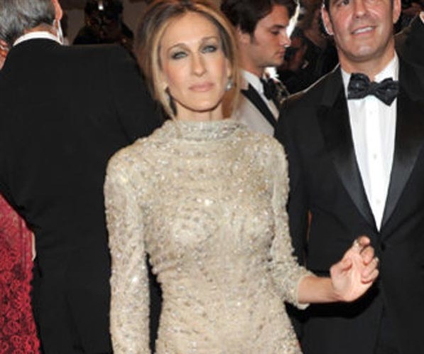 Sarah Jessica Parker sendo escoltada pelo maridão