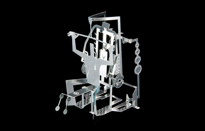 Curioso, ele sempre buscou trabalhar com materiais que envolviam tecnologia e novos materiais. Através de experimentos que ele mesmo tinha feito quando trabalhava para a indústria de eletrônicos, Sam descobriu um modo de trabalhar pequenas folhas de aço (nas dimensões de um cartão de visita) criando uma versão 3D de seu ambiente de trabalho.
