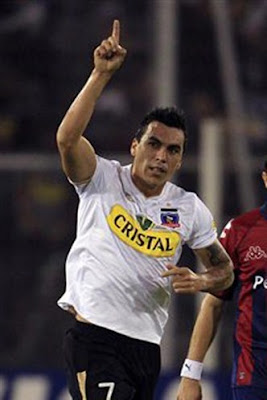 O jogador Esteban Paredes, do Chile, comemora gol contra os chilenos. Com esses músculos é bem provável que a torcida comemorasse até se ele fizesse um gol contra!