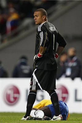 O goleiro da Venezuela, Renny Vega, faz pose diante dos flashes. Mas nem precisava, ele fica bem sob todos os ângulos!