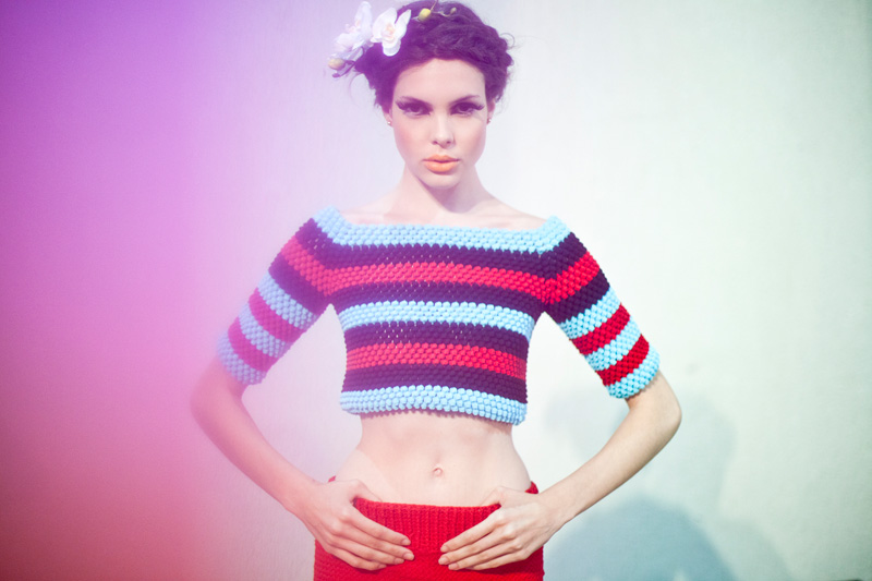 Sua segunda ação contou com a colaboração do marido fotógrafo e foi ainda mais ousada. O casal contatou cinco meninas de diferentes lugares do mundo e mandou uma peça para cada uma delas, na condição que enviassem três fotos com o suéter em diferentes composições. As “modelos”, cada qual com seu estilo, agregaram uma visão diferente ao trabalho da estilista, que somente poderia ser oferecido através de um olhar externo. Esse editorial rodou o mundo inteiro e virou referência.