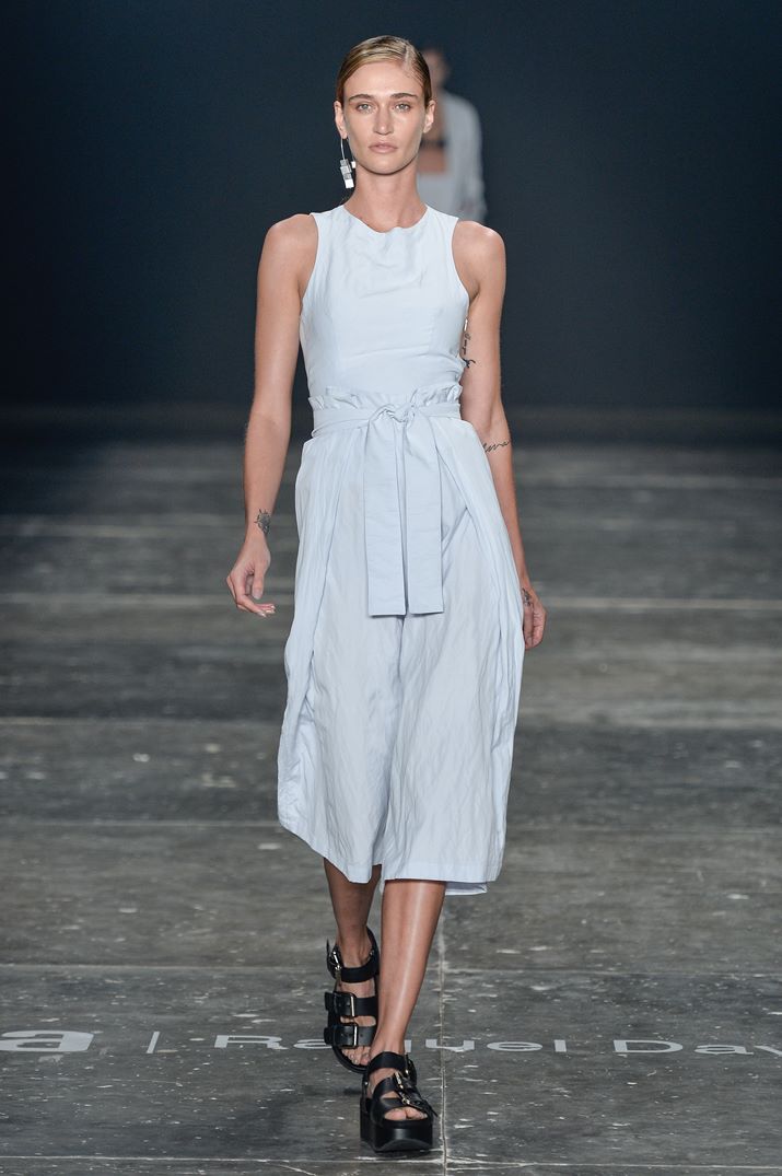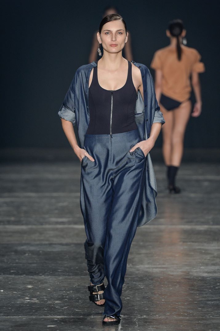 A silhueta é minimalista e moderna, pois o novo é fazer inesperadas combinações e sobre Raquel Davidowicz.posições. O look esportivo é premium, utilizando tecidos fluidos, diferenciados e sofisticados. Priorizamos fibras naturais, como seda, algodão e linho, assim como o tencel e o rayon. Uma novidade para a linha alfaiataria casual é a sarja “stay black”, de algodão com elastano, que não desbota, mesmo após várias lavagens. O Jeanswear, em tencel ou algodão, tem uma proposta leve e fluida. Bolsos grandes em um espírito super utilitário.