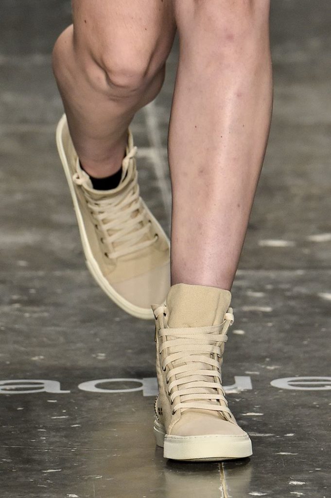 Sandálias com plataforma plana e exagerada, assim como chinelos, ambos com palmilha anatômica e fivelas gigantes, com o conforto e modernidade fáceis para o dia-a-dia. Tênis cano alto em canvas, preto ou cerâmica, são unissex. Os acessórios têm leveza no design e incluem brincos, anéis e colares banhados em prata ou ouro.