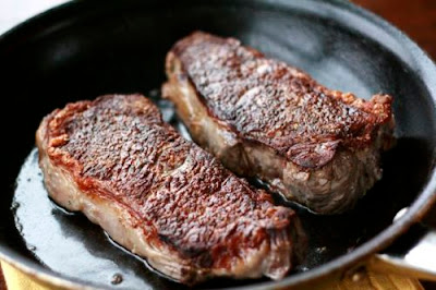 4. Aqueça uma frigideira, coloque a manteiga e a carne e deixe dourar em fogo forte sem apertar a carne.
